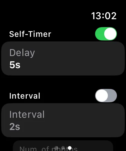 You can configure and run self-timer and intervalometer from the Watch app.