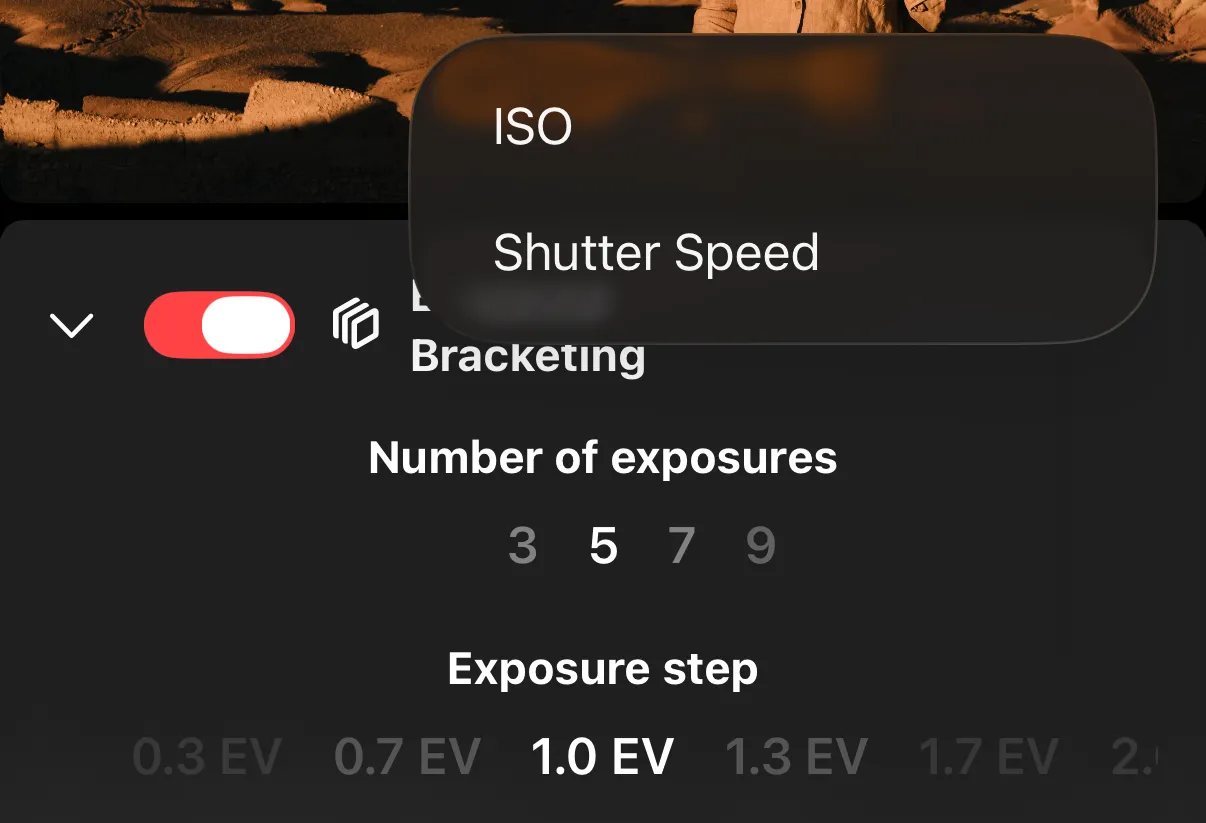 This is software-controlled bracketing managed by Shutter — it works independently of any built-in bracketing on your camera.