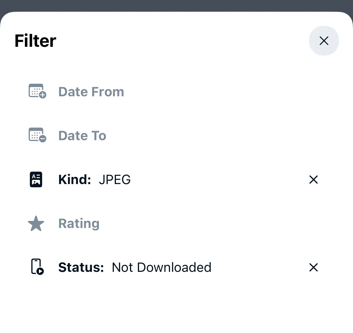Select between downloaded and not downloaded photos and videos.