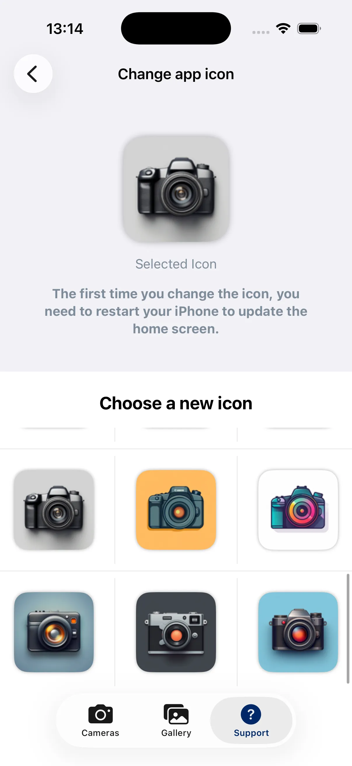 Select your preferred icon from the available options. The change takes effect immediately on your Home Screen. The first icon change might require an iPhone restart (a known iOS issue).